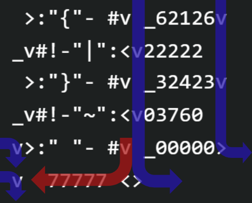 [126, 125, ..., 32, 0, 0, 0, 0, 4] // 32 = " "