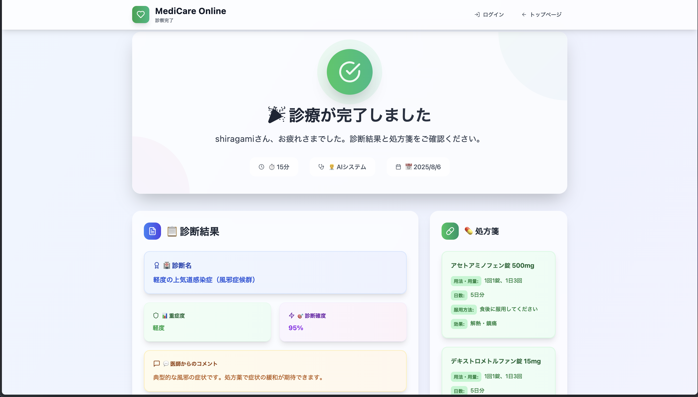 診察完了画面