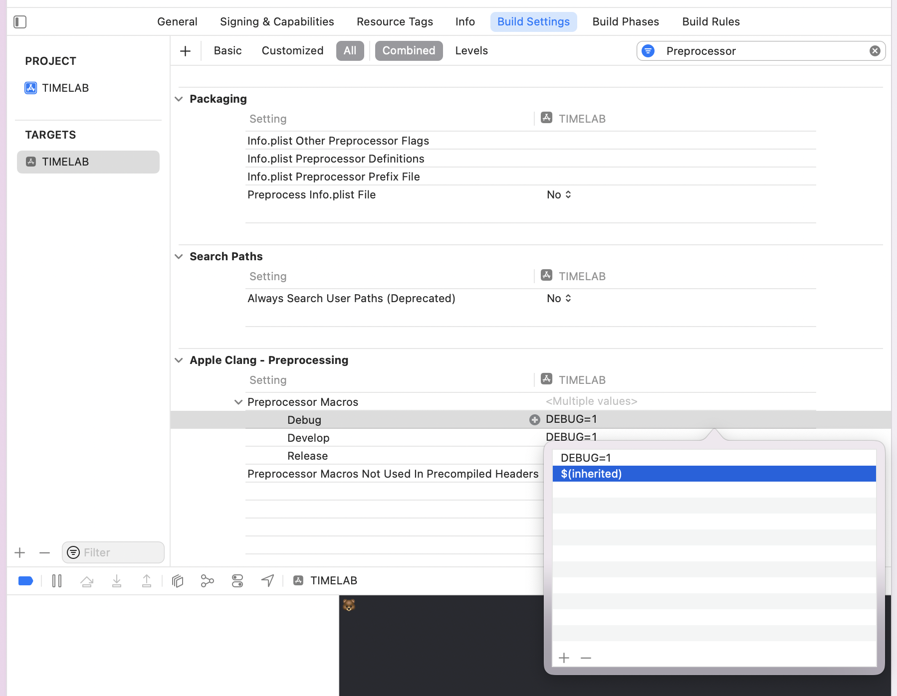PROJECT > Info > Configurations > + > Duplicate "Debug" Configurationとして、「Develop」を追加