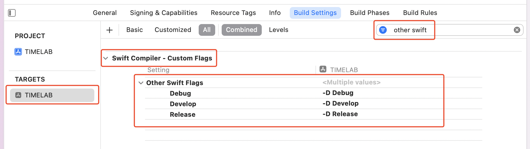 Build Setting > 「other swift」で検索 > Swift Compiler - Custom Flags > Other Swift Flags