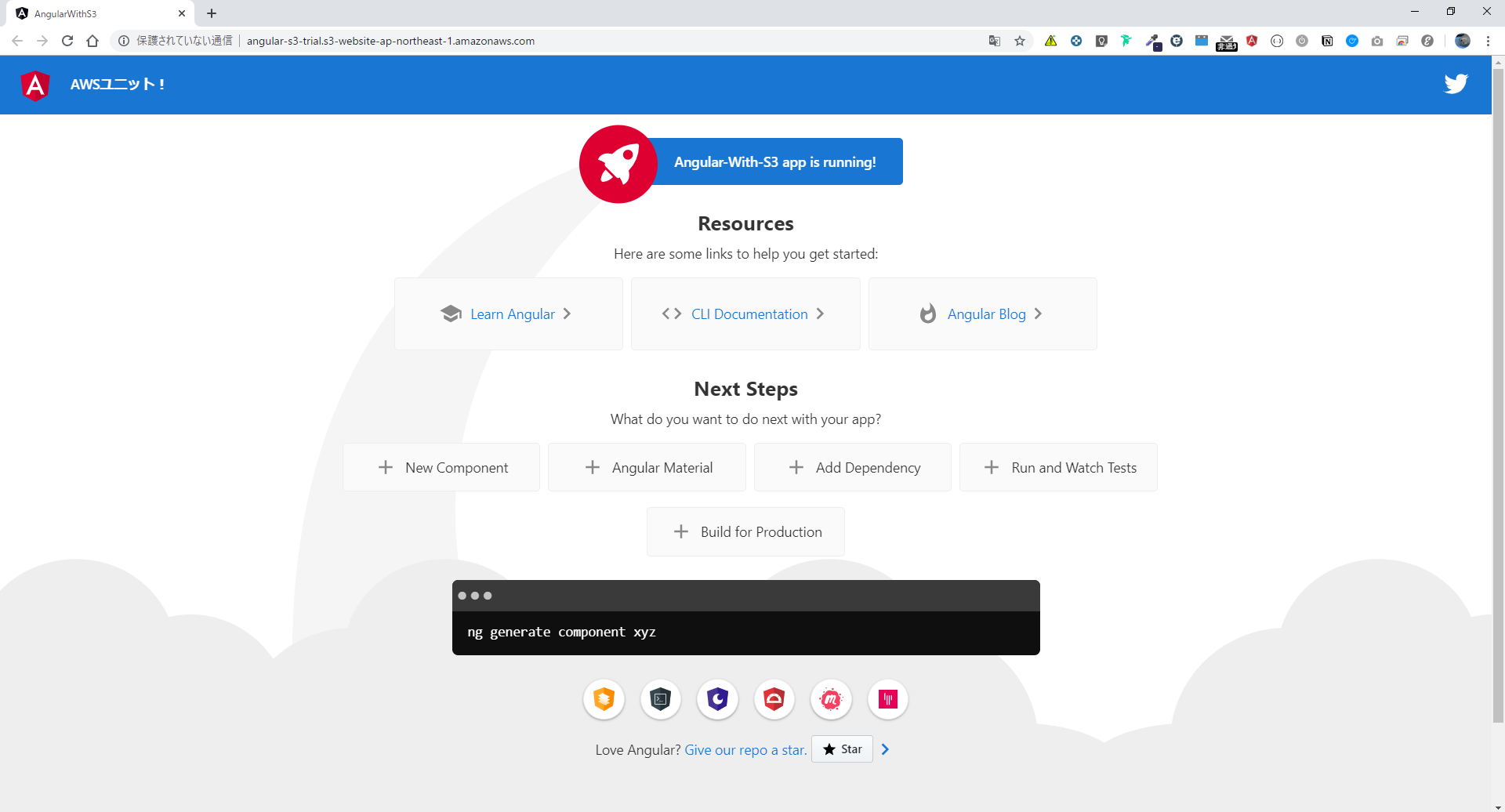 S3×Angularということで、S3にAngularのプロジェクトを置いて、ホスティングする方法です。