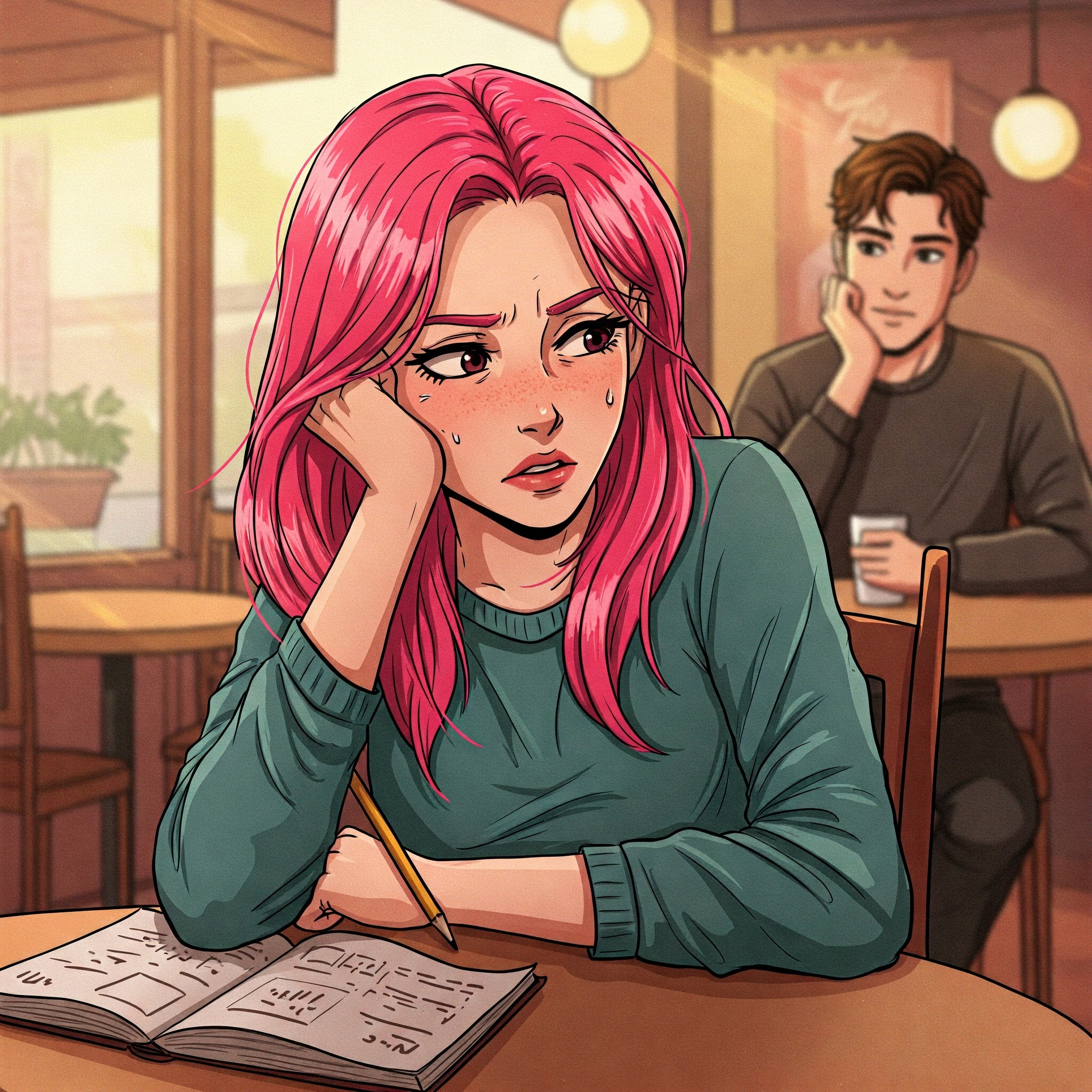 今日は、カフェで勉強しようと意気込んで出かけたんだけど、まさかの展開に見舞われてしまった…。隣の席に座った人が、とんでもなくかっこいい人でね、もう全然集中できなかったんだよね…!教科書を開いてはみたものの、気づけば彼の横顔をちらちらと見てしまっていて、肝心の課題は全然進まず…。