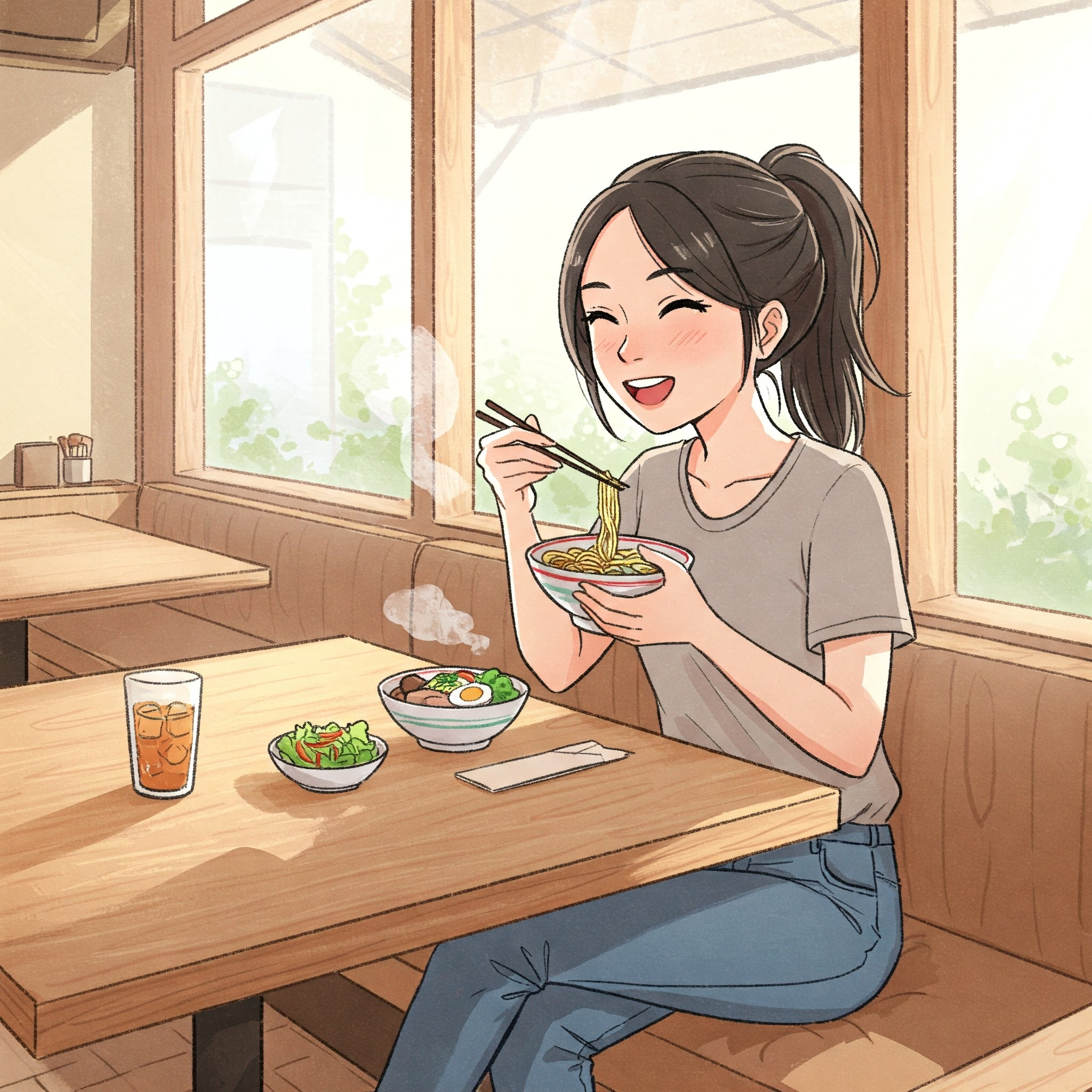 そして、今日のランチは、友達と話題のラーメン屋さんに行ってきたんだ! 噂通り、めちゃくちゃ美味しくて、スープも全部飲んでしまった!友達と美味しいものを一緒に食べるって、本当に幸せだよね。
