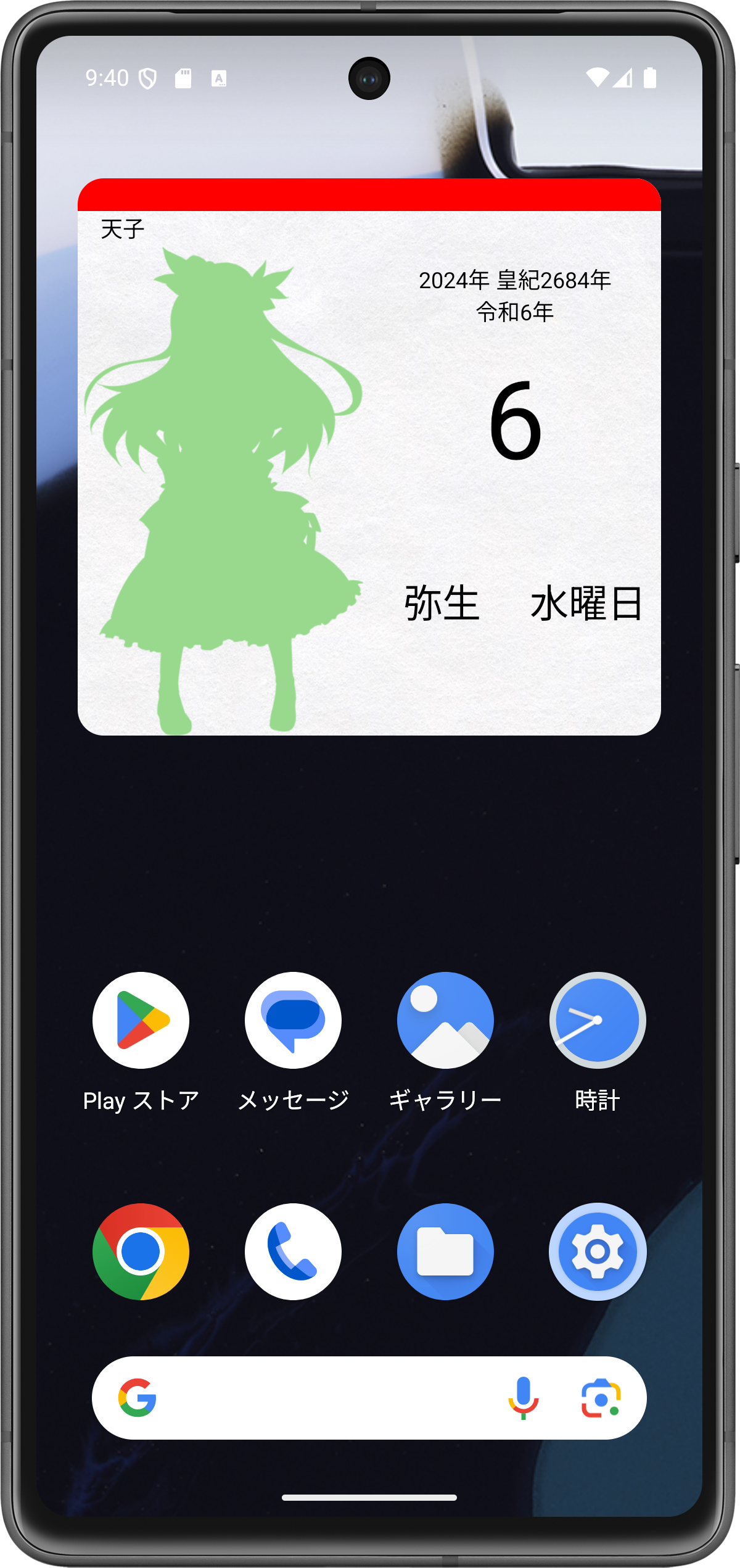 - カレンダーの表示は午前0時から午前6時の間に自動的に更新され、午前0時以降にウィジェットをタップする事でも更新できます。