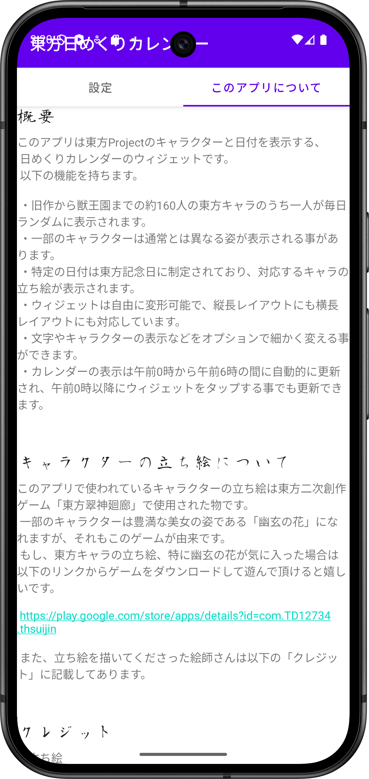 2025年4月、Android向けアプリ「東方日めくりカレンダー」をリリースしました。
