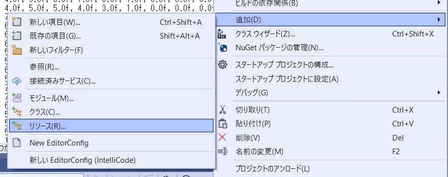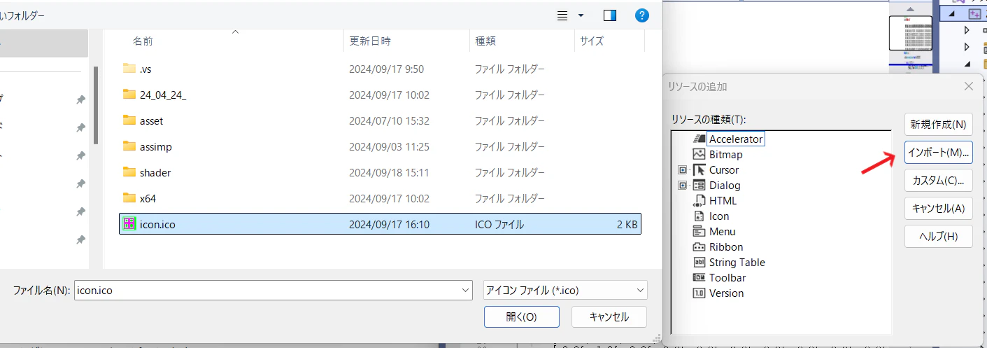 すると<プロジェクト名>.rcファイルとresource.hが自動で作られます。