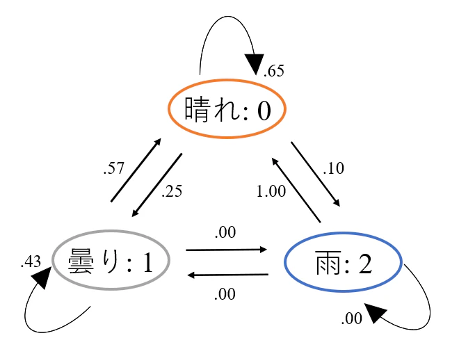 実際に遷移確率を求めるわけですが、定義や式だけではイメージしづらいかと思います。