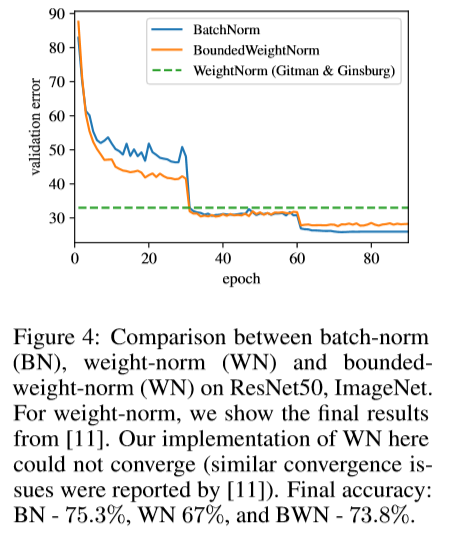 BNはRegularizerなので、L2 Regularization(Weight Norm)との関係は、どうなんだろう? というところから、安定した計算をするため$L_2$ Normの代わりに$L_1$ normを使うことを主張する論文。