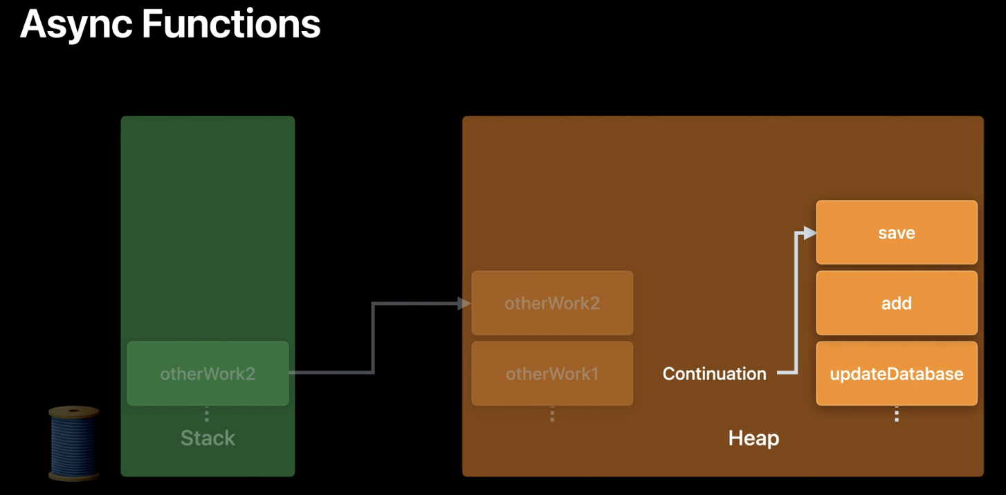 swiftにおける、async/awaitはCoroutine(コルーチン)と同じような仕組みを使用しているようです。
