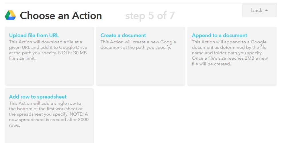 8.次のように何個か選択肢が表示されるので、Googleスプレッドシート「Add row to spreadsheet」を選択します。