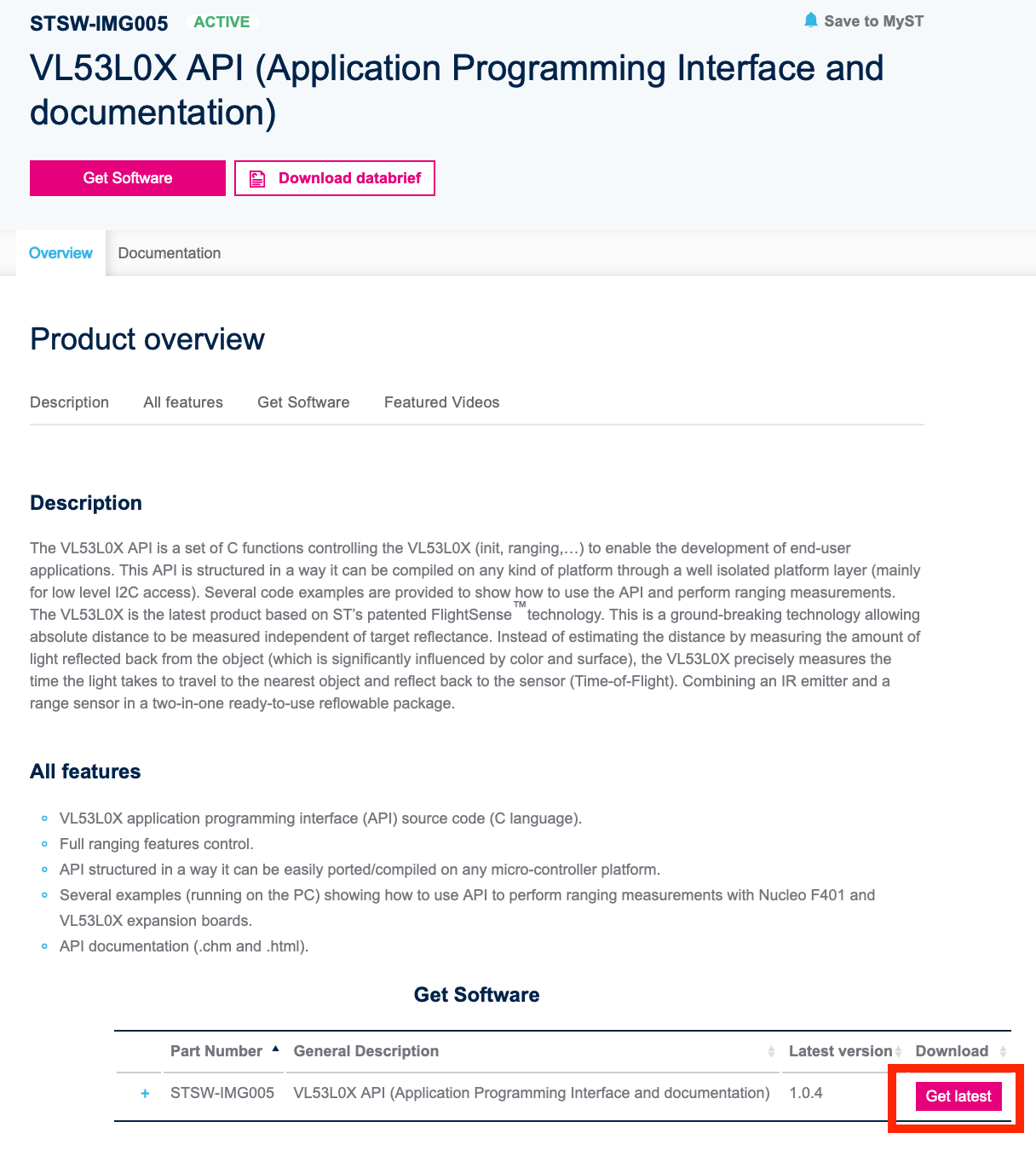 STマイクロエレクトロニクスのページから、ソースコードをダウンロードします。