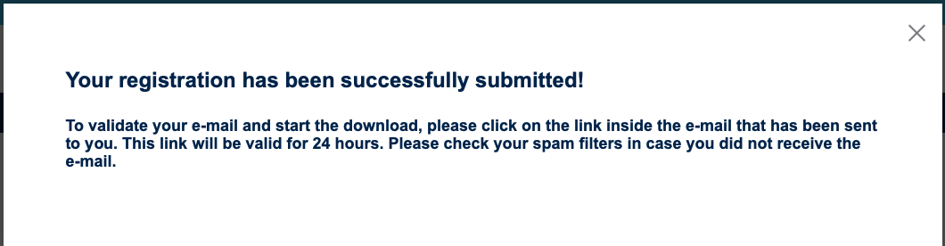 以下のようなダイアログが表示された後、登録したメールアドレスにメールが届きますので「Download now」のボタンを押下します。