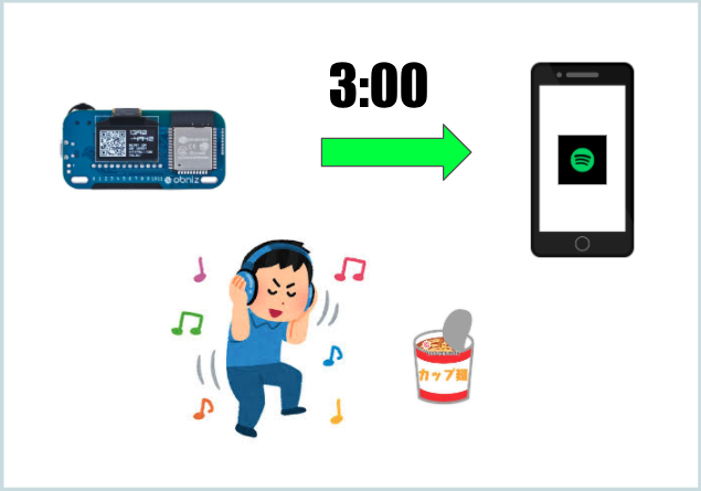 手持ちの知識とデバイスからobnizとSpotifyAPIを使ってカップラーメンタイマーを作ることにしました。