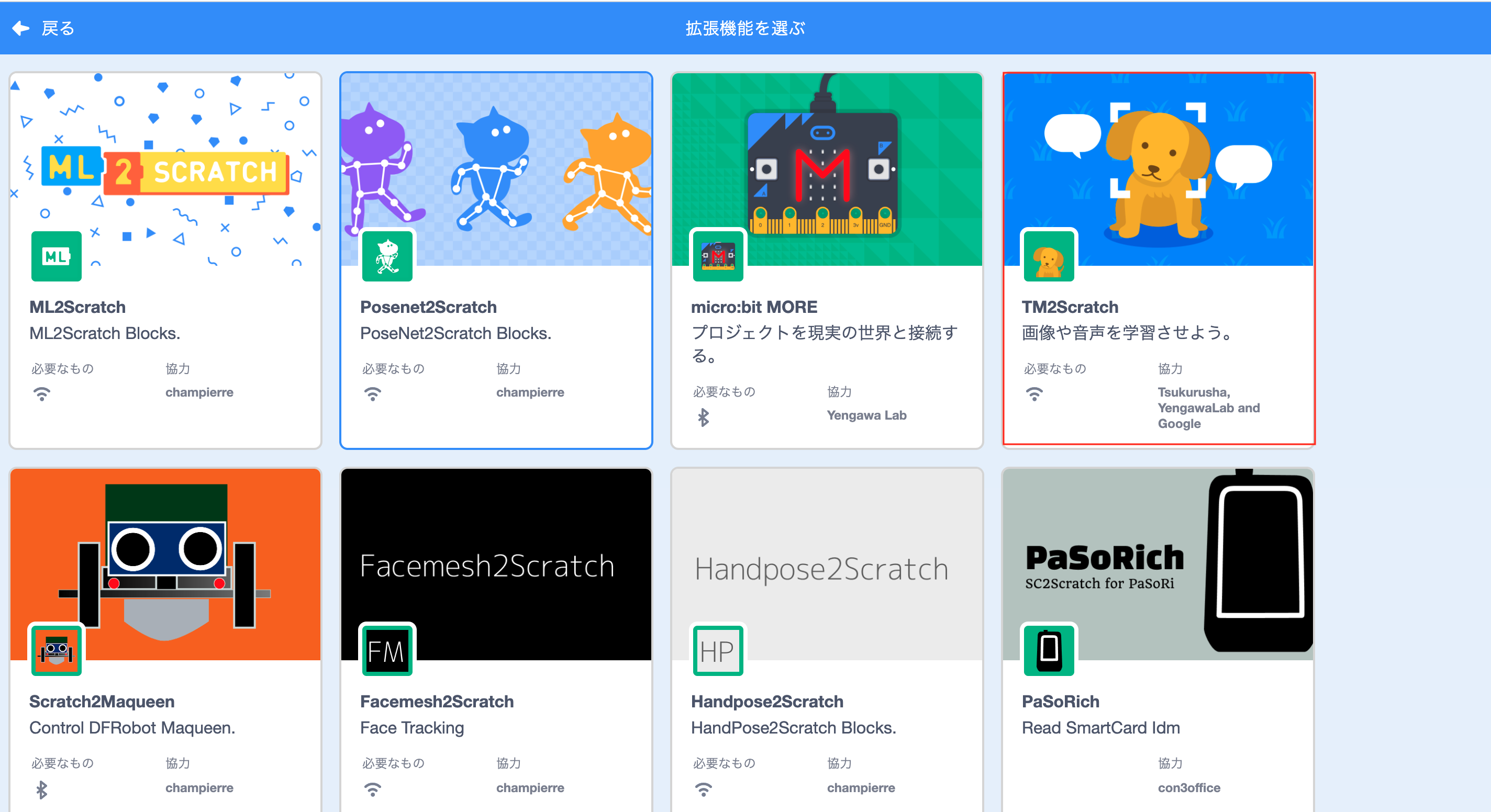最初の注意点としては通常の検索でヒットするScrachではなくTM2Scratch拡張機能が入っているものを使います。
