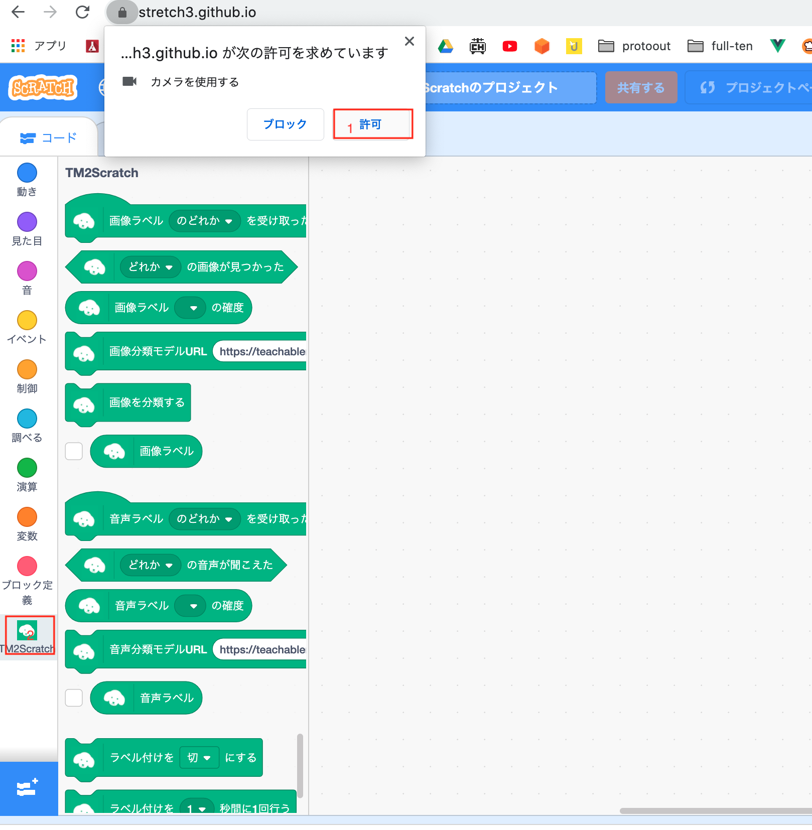 TeachableMachine 向け Scratch 拡張機能 (TM2Scratch) 使い方