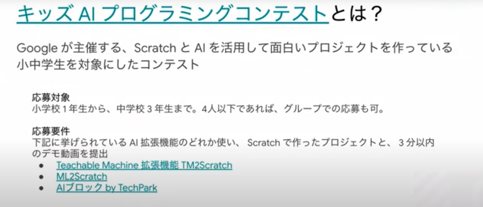 Day1での、キッズAIプログラミングコンテストの応募要件であったScratchとAI拡張機能を使った作品がどれも面白かったので、