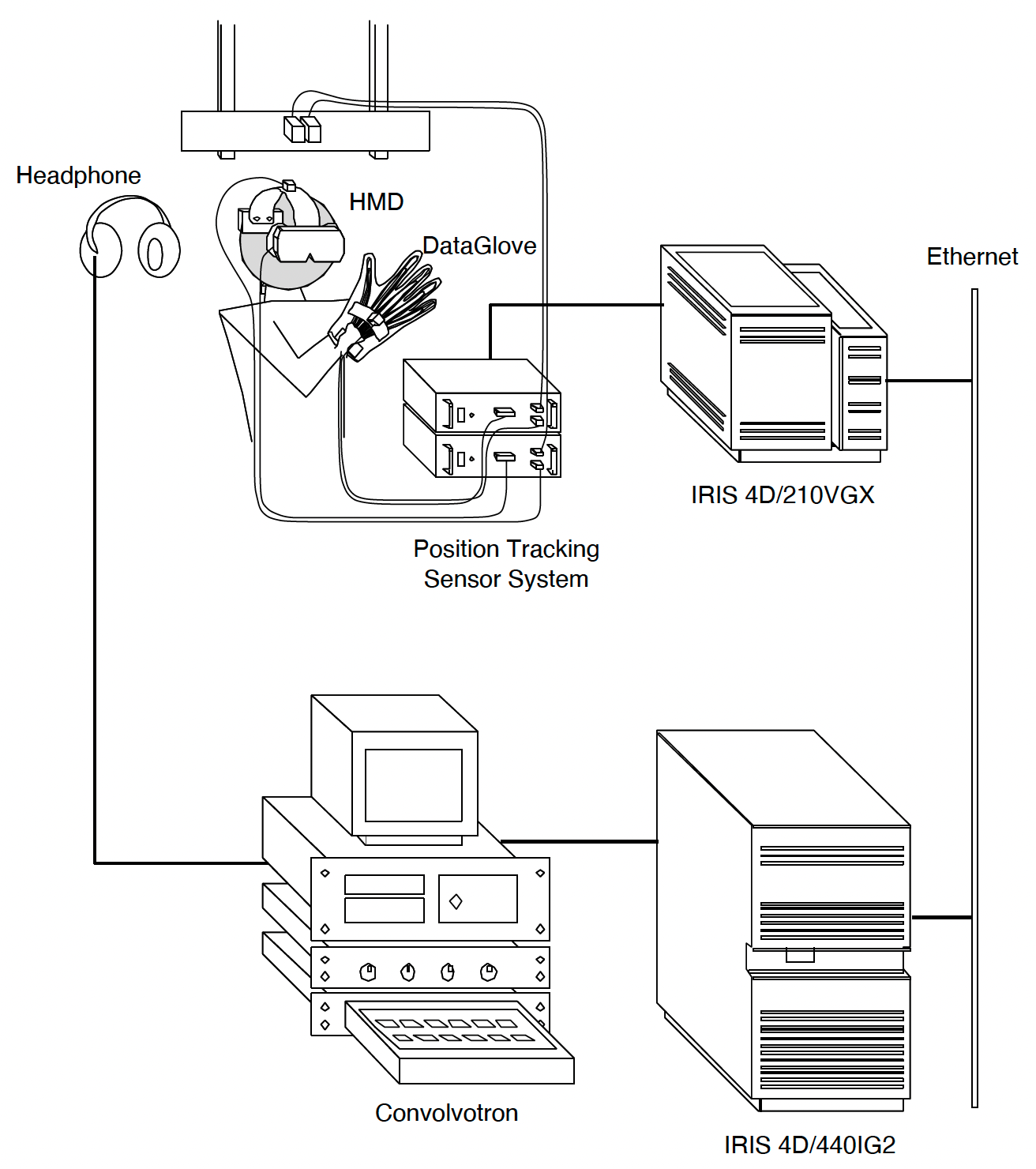 この解像度だと、「当時のVR研究者は何を見ていたんだ!?」という気もしないでもないのですが、それでも当時の記憶では「静止画の世界だったComputer Graphicsの世界に、Diveする事が出来る!」という衝撃的な体験が出来た事がとても記憶に残っています。