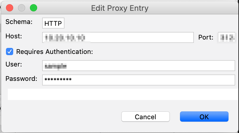 お使いのプロキシがユーザー/パスワード認証が必要であれば、proxyUser・proxyPasswordも追加してください。