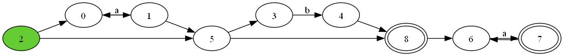 受理される文字列は空文字、a、b、ab、aa、baなどがあります。