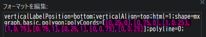 冒頭のDraw.ioでのフォーマットを入力する画面にて、多角形の端点を表す部分(↓の画像)に、データを貼り付けます。