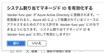 システム割り当てマネージドIDを有効化し、「保存」します。