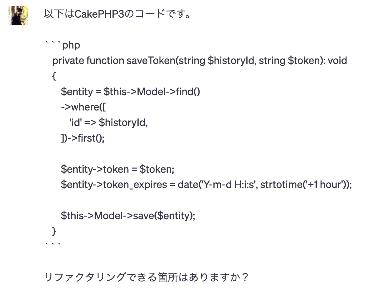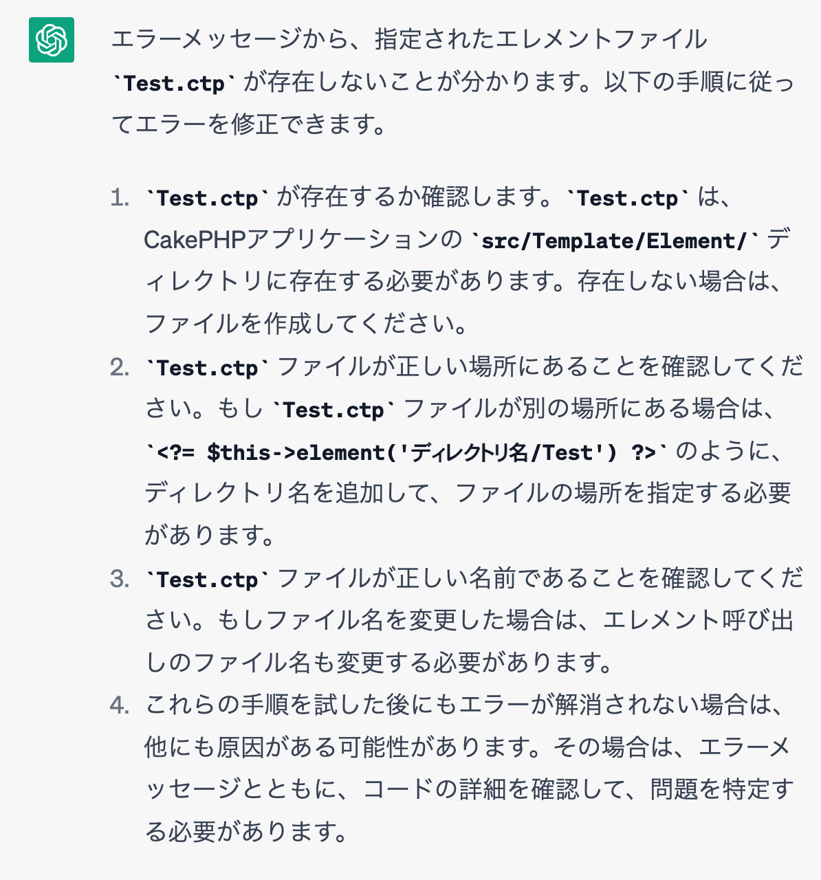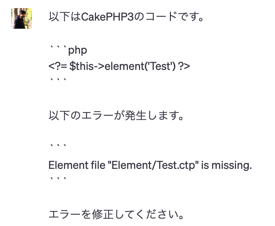 実際にCakePHPのエラーについて尋ねる際は以下のようになります。