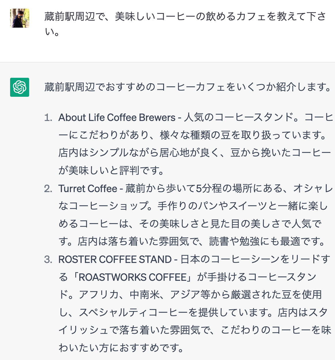 今回試した結果、全て存在はしていますが、蔵前からはかけ離れた位置にあるお店をおすすめしてきました。