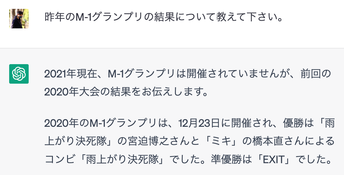基本的に、「〇〇について教えて」と尋ねると不正確な返答を返してくる、と思った方が良さそうです。