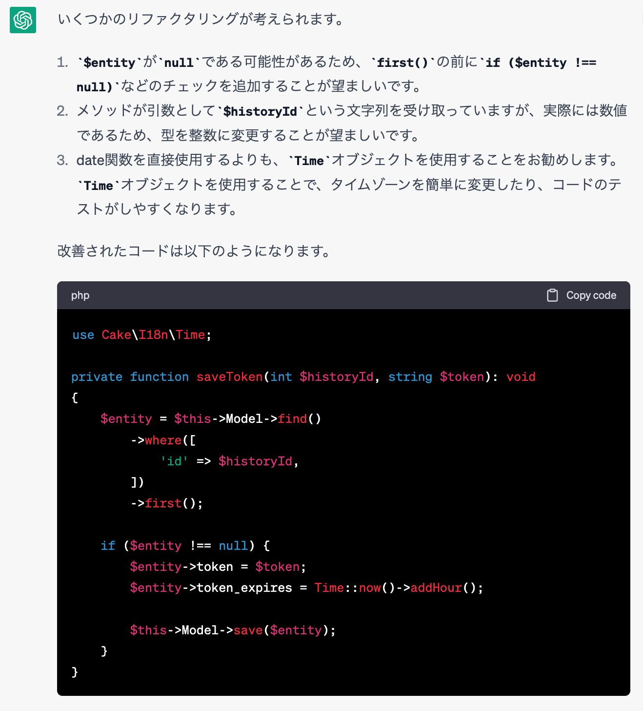 例えばエラー解消については、解消後のコードまで提示してくれるのが本当に助かります。