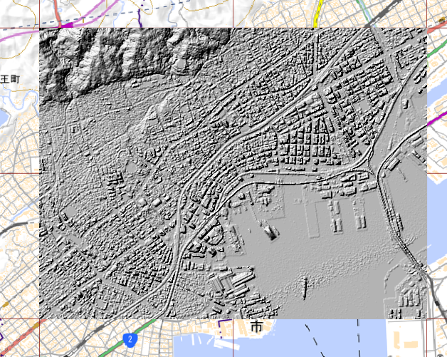 ※…さっき気づいたのですが、DSM(数値表層モデル)なので船もちゃんと計測されています(笑)とれたてデータならではですね。