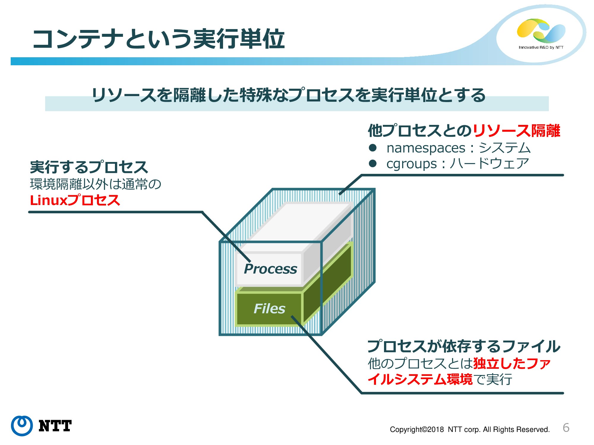 そして、そのコンテナ内で実行されるプロセスはあたかもOSを占有しているかのように見えます。