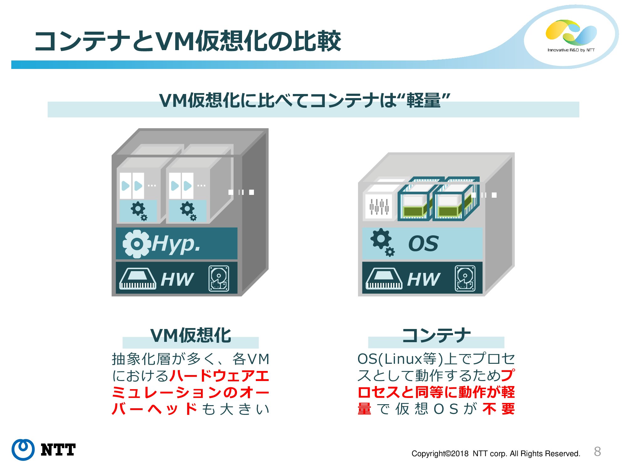 コンテナは一つの共有されたOS上で独立されたアプリケーションを作成する技術です。