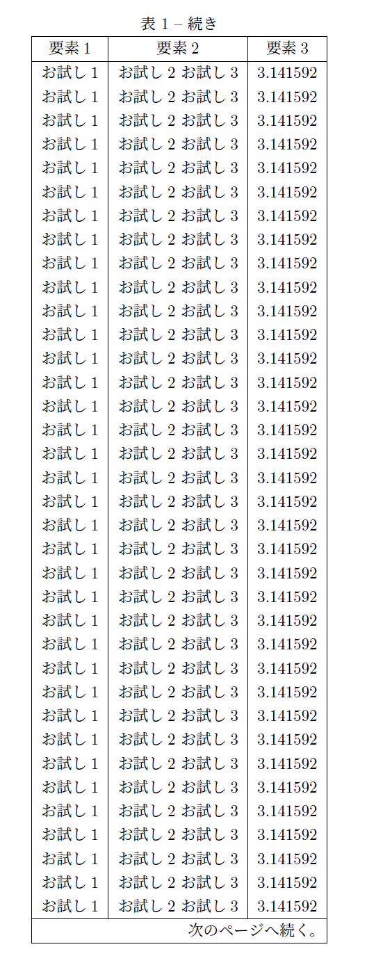 \caption{長い表} \label{tab:long} \\ % 強制改行が必要