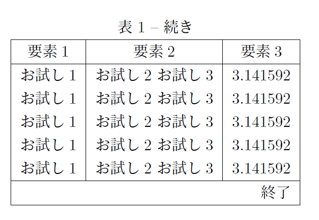 実際にlongtableを使うときはこんな感じです。