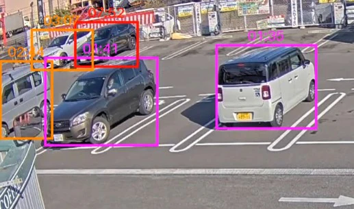例えば、車が一旦カメラの枠外に出て、短時間で再度戻ってきて駐車した場合でも、以前の追跡IDと同じIDが振られて検出されることがあり、その場合は静止時間を前回の時間に加算していくことが可能になります。