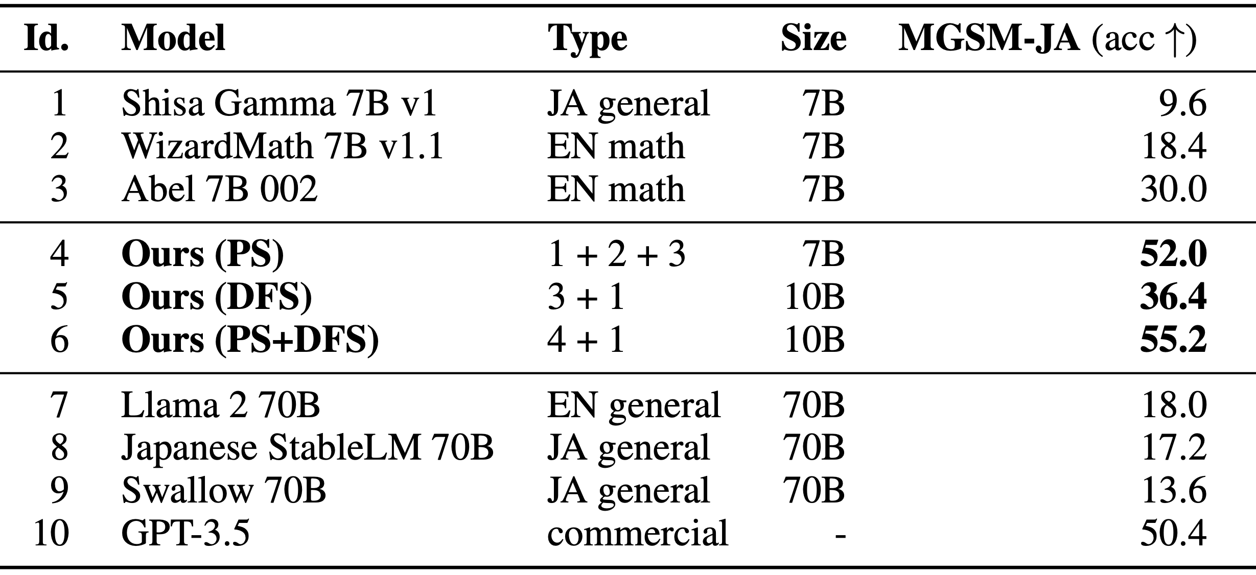 | ID | Model | Type | Size | MGSM-JA(acc↑) |