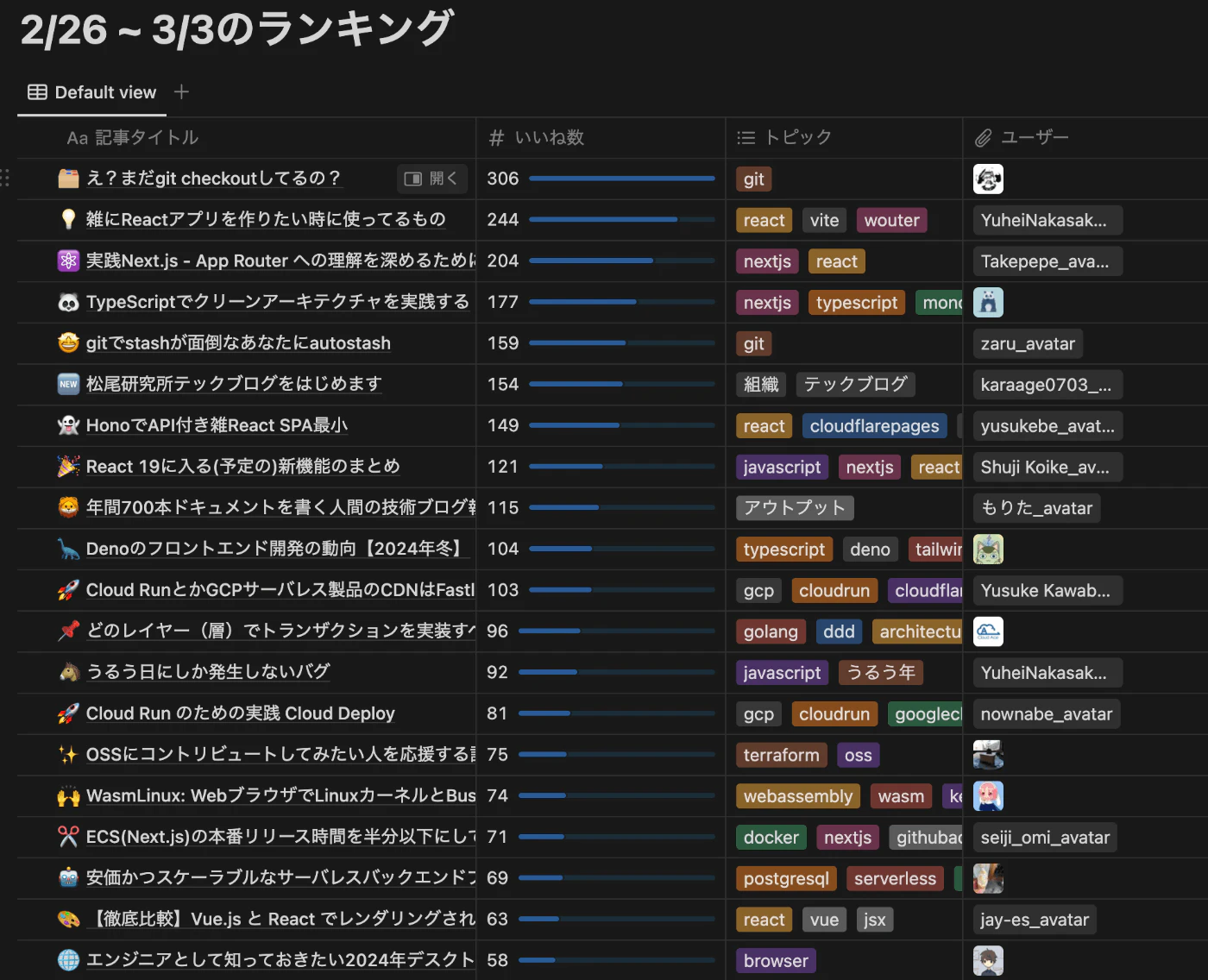 また、週間ランキングでは上位30位まで、月間ランキングでは上位50位までをNotionデータベースに保存して公開します(上の投稿の「ランキングの続きはこちらから」がデータベースへのリンクになっています)