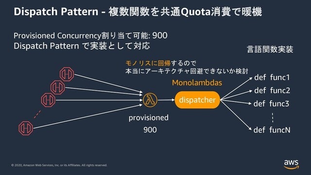 按分された一つの関数に与えられるProvisioned Concurrencyの数は非常に少なくなってきます。