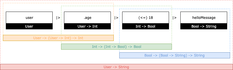 この場合では、userを引数に取っていない。この書き方がElm始めた時からすごい不思議だったんだけど、一度わかったら全然難しいことじゃなかったよ〜