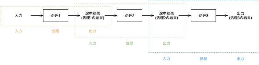 パイプは、一つ処理をしてその結果を次の処理に渡して〜という実行を繋げていく。