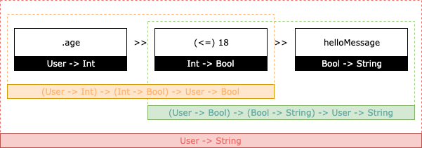こちらの場合は、上記の1, 2, 3の処理を全てまとめて、「userのageを取ってきて18以上かチェックして出力テキストを振り分ける」関数として捉えることができる。
