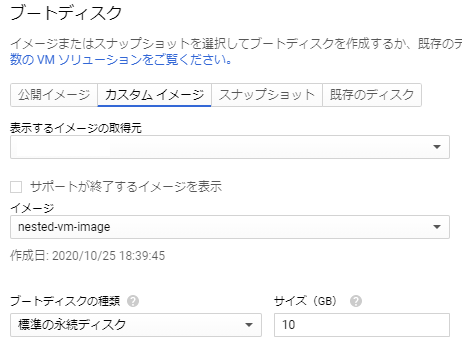 インスタンスの作成時に、1でつくったイメージが選べるようになっています。