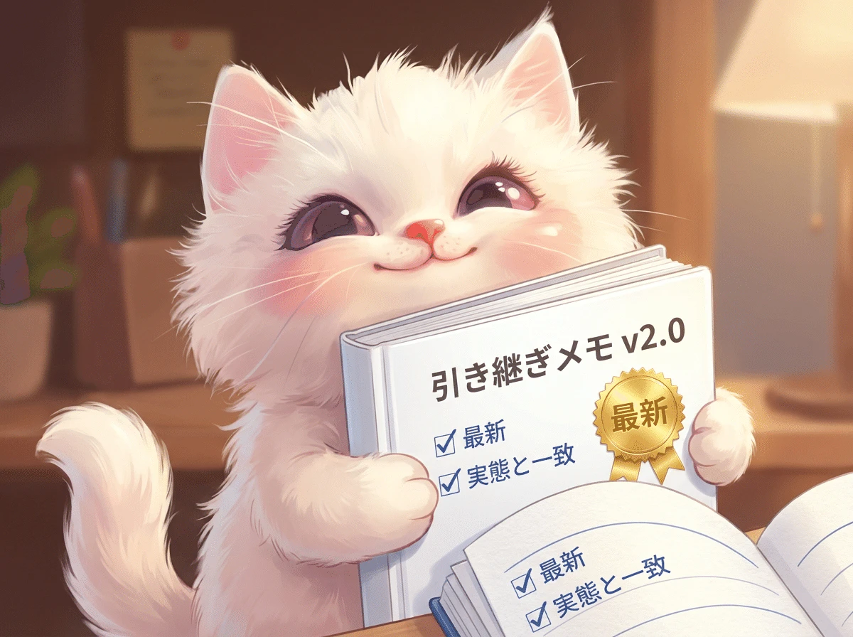 冷静にAIに毎回最初に読ませている「引き継ぎメモ」を開いたら、1ヶ月前のまま放置されていた。AIは律儀にこの古いメモを毎日読んでいた。こちらがそう指示していたから。