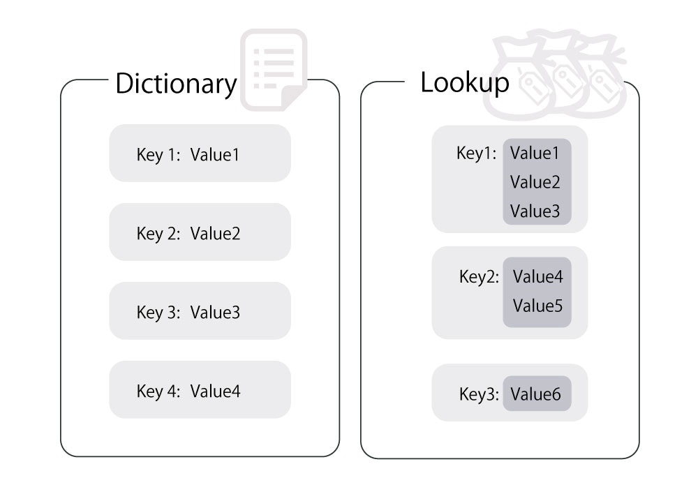 Lookupは一つのキーに対して複数の値を保持できるデータ型です。