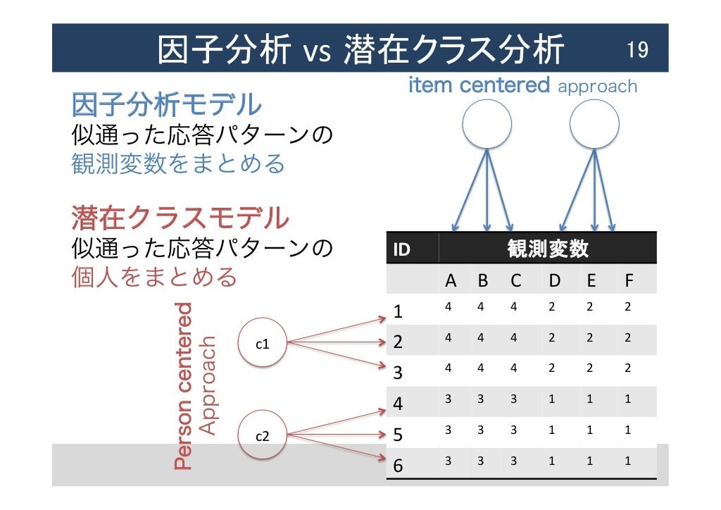潜在クラスモデルは類似の対象(参加者など)をまとめるイメージです。