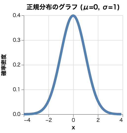 | 正規分布 | $\begin{align} f(x)&=\frac{1}{\sqrt{2\pi}\sigma}e^{-\frac{(x-\mu)^2}{2\sigma^2}} \\ &-\infty \lt x\lt \infty \end{align}$ | 平均$\mu$、分散$\sigma^2 $ | $\mu$ | $\sigma^2$ |