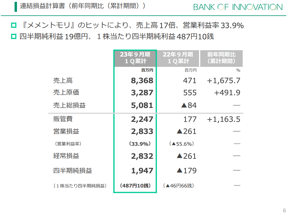 source:BANK OF INNOVATION 2023年9月期