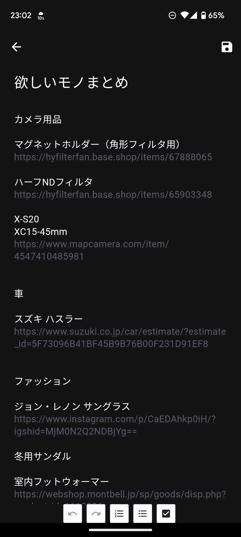 入力物は「テキスト」「箇条書き」「チェックリスト」「画像」を4つのみにします。太字や見出しは入れません。また、エディタに関してもスマホからだと使いづらいのでマークダウンは利用しない選択をしました。