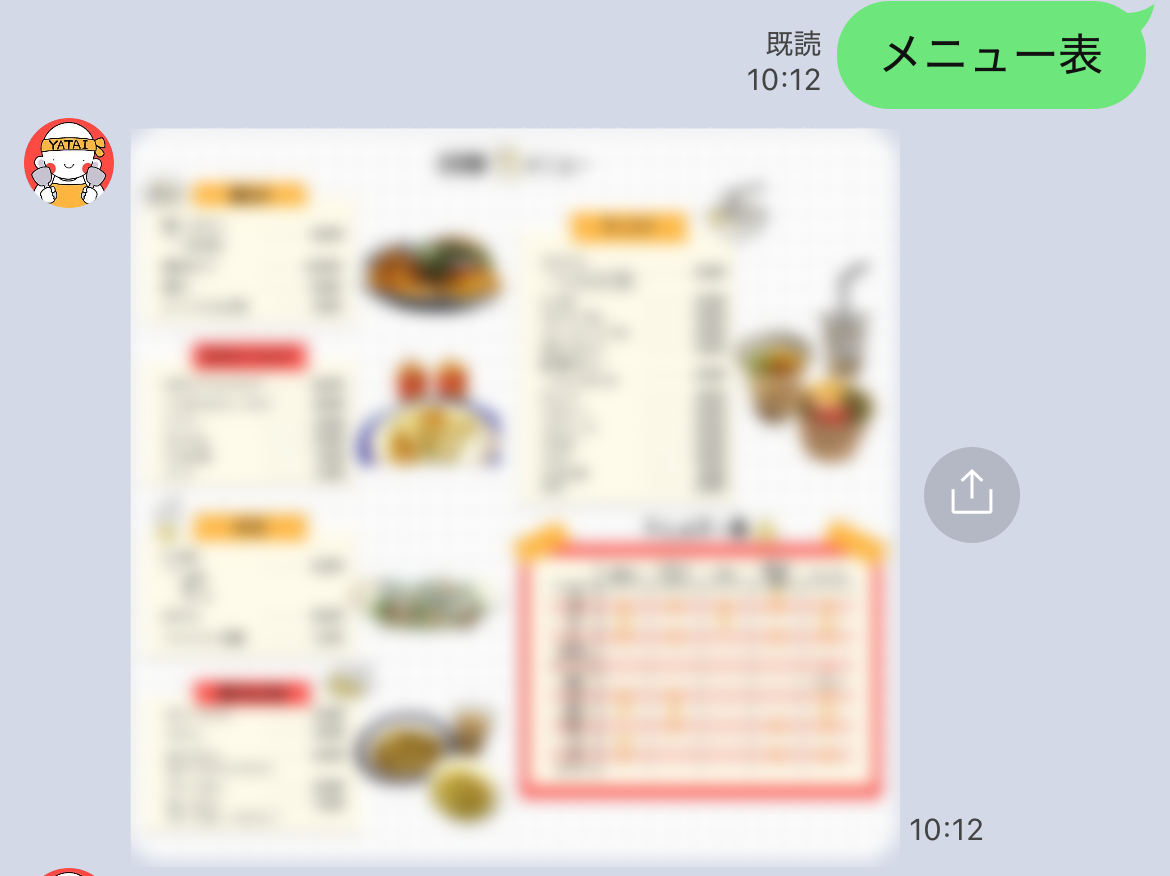 リッチメニュー左側の黄色いボタンをタップするとメニュー表の画像が確認できます。