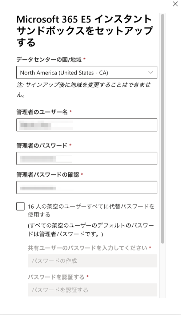 インスタントサンドボックスを選択すると、自動的に16人の架空のユーザーアカウントが作成されます。